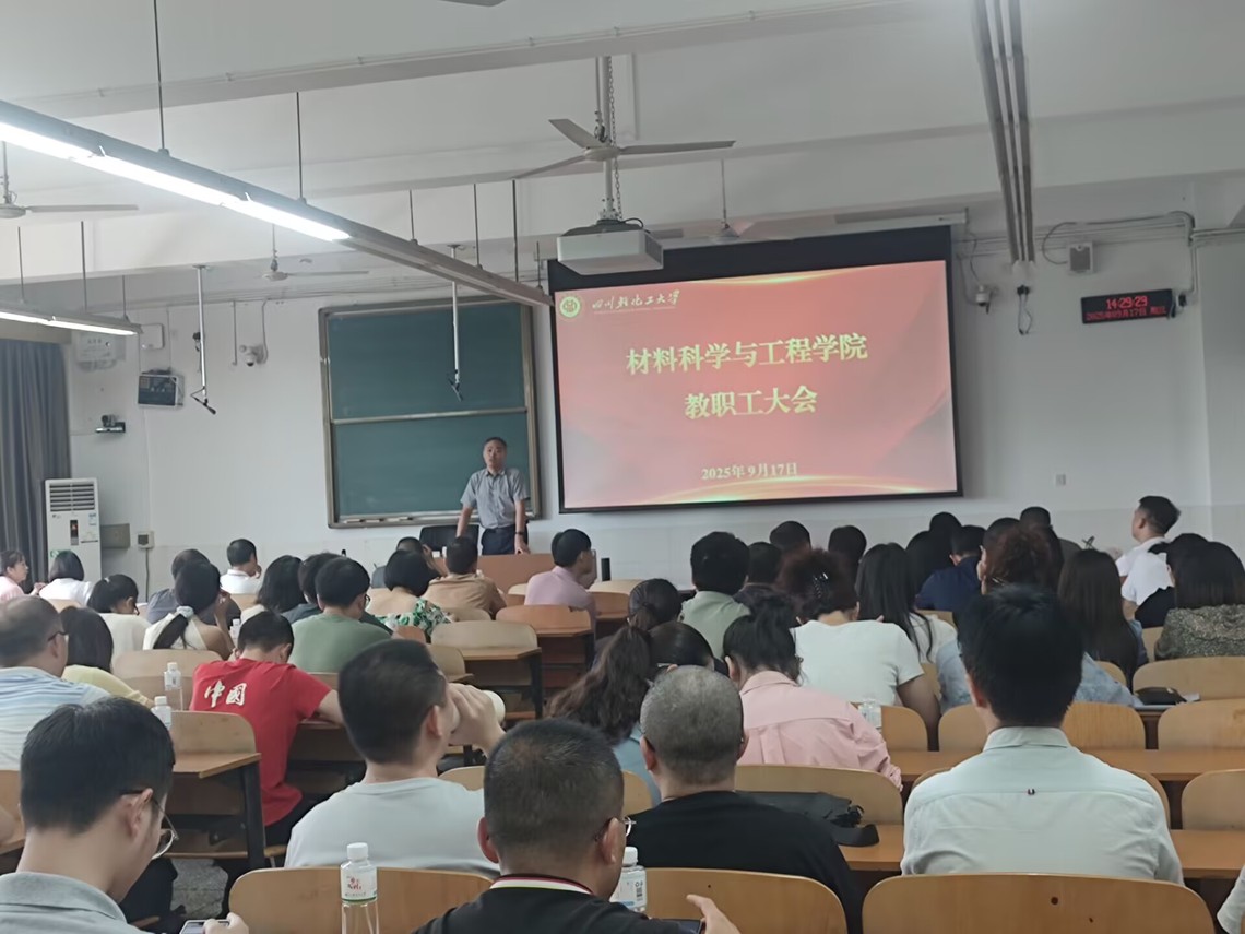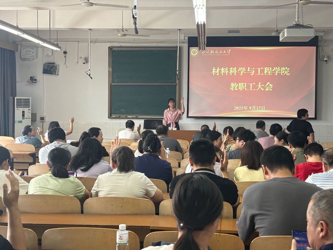 9月17日,材料科学与工程学院在汇东校区厚德楼420教室召开教职工大会,全面规划部署近期重点工作,凝聚全员智慧与力量,为学院发展增添动力。全院教职工参会,会议由学院党政办主任杨红霞主持。
