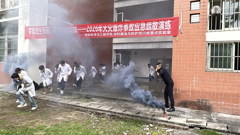 为深入贯彻落实《四川省科学技术厅关于开展安全生产自查和应急演练的通知》精神,切实筑牢校园安全防线,材料科学与工程学院与腐蚀与防护四川省重点实验室精心组织、系统部署,于近期开展了实验室安全专项工作。2026327日,学院党委书记黄斌、院长金永中带队开展实验室安全隐患排查。2026330日,学院在第二实验楼负一楼组织火灾爆炸应急逃生演练,院长金永中、实验中心主任何刚及部分师生共同参加。