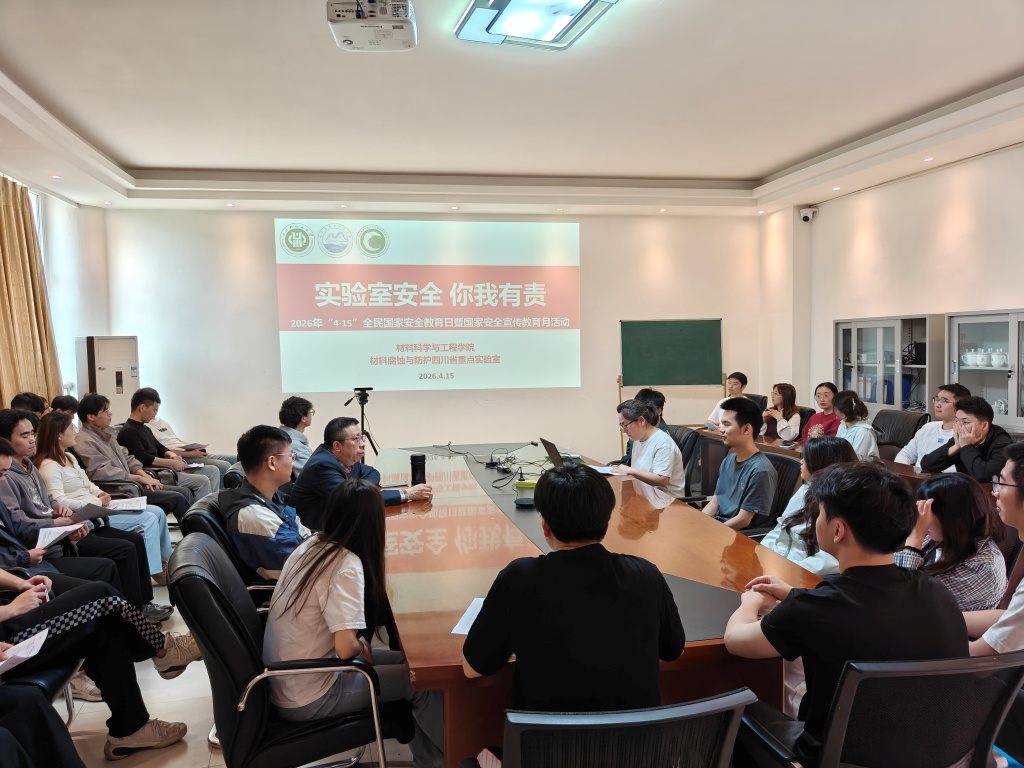 2026年4月15日上午10:20,材料科学与工程学院和材料腐蚀与防护四川省重点实验室共同举办举办了2026年“4·15”全民国家安全教育日暨国家安全宣传教育月活动。本次活动由材料科学与工程学院副院长、材料腐蚀与防护四川省重点实验室主任罗宏教授主持。罗宏教授在活动中指出,国家安全是指国家政权、主权、统一和领土完整、人民福祉、经济社会可持续发展以及国家其他重大利益相对处于没有危险和不受内外威胁的状态,同时包括保障持续安全状态的能力。他强调,自觉关心、维护国家安全是每个公民的基本义务,国家安全的真正实现有赖于人人参与、人人可为,需要大家共同守护。结合近期学院安全检查中发现的问题,罗宏教授从危化品管理与使用、高温仪器使用、实验室卫生,实验室安全行为等方面对参会人员提出了具体要求。随后,重点实验室工作人员围绕近期安全检查的标准与结果,带领大家共同学习了《高等学校实验室安全检查项目表(2025年)》相关内容。本次活动的开展,进一步增强了师生对国家安全和实验室安全的认识,有助于引导大家在今后的学习和生活中规范自身言行。